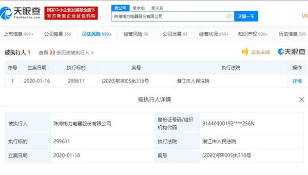 不知怎么的,自从罗永浩、王思聪等人被列为被执行人名单,限制高消费后,不仅不少人都明白了“被执行人名单”和“限制高消费”的含义,而且网上关于被列入执行人名单的企业似乎“突然”也多了起来。这不天眼查数据显示,1月16日,格力电器(68.350,0.44,0.65%)就成为了被执行人。